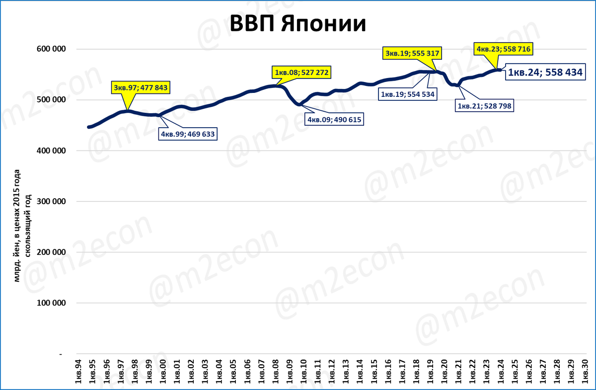 Отдельно стоит отметить, что с 2019 года (за последние 5 лет) экономика Японии выросла всего на 0,5%.