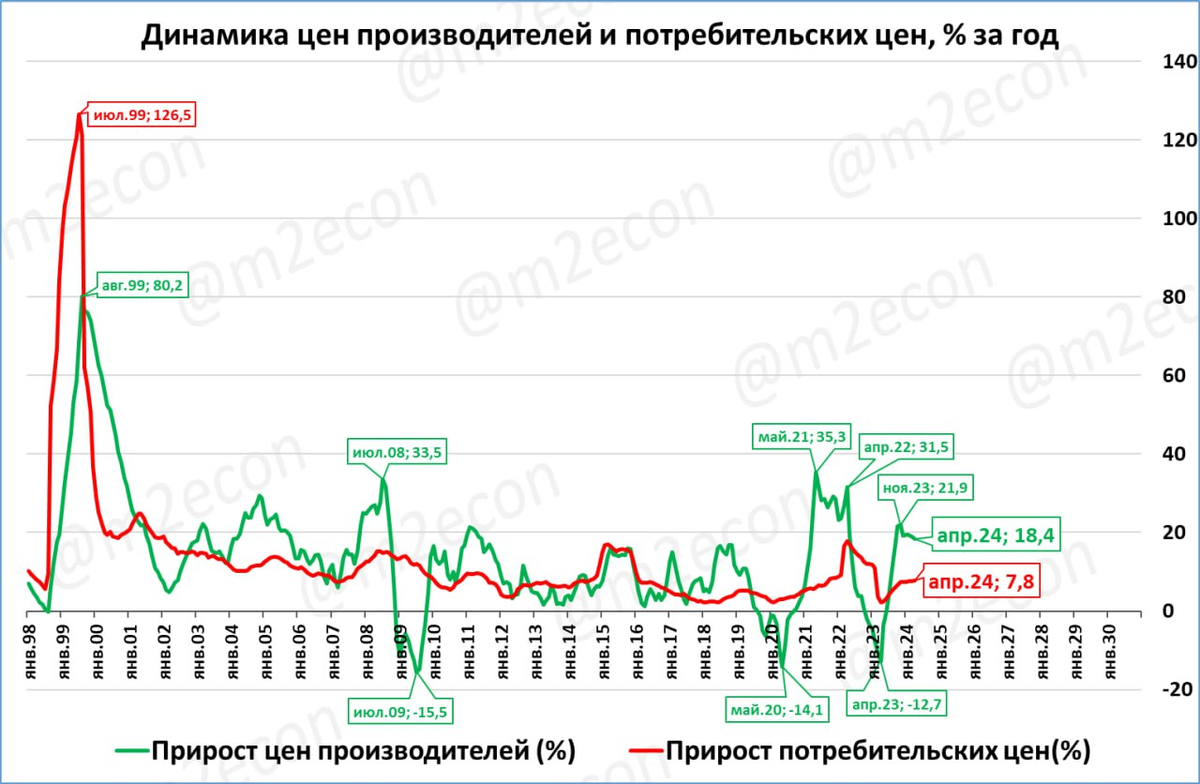 Реальные цены производителей по итогам апреля выросли на 10%.