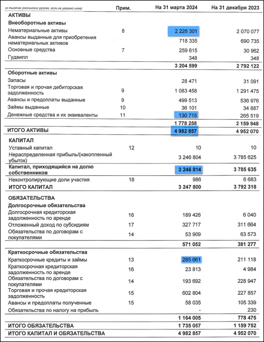 Нематериальные активы 2,2 млрд - это как раз ПО, которое разрабатывает компания. На эту статью приходится 44% от всех активов.