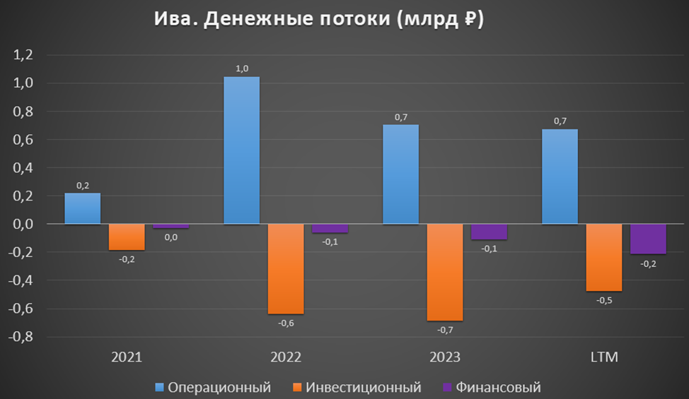 Из диаграммы видно, что операционный поток за последние 12 месяцев на уровне 2023 года. Но основные платежи должны приходится на 2ое полугодие.