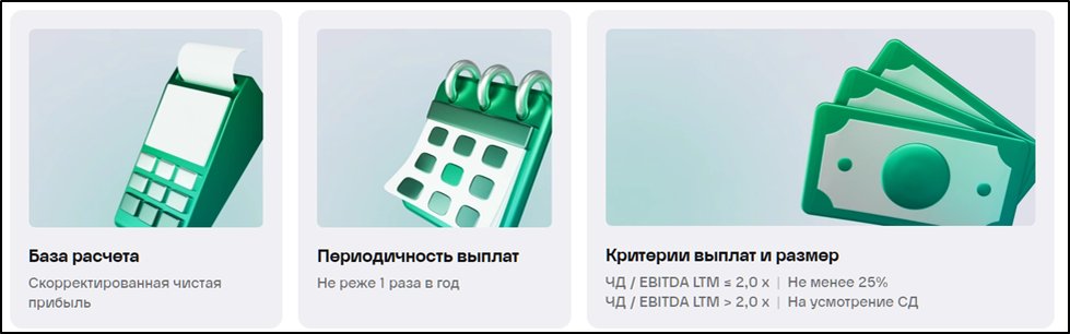 ИВА в мае 2024 приняла новую дивидендную политику на ближайшие три года. Согласно которой при низкой долговой нагрузке (ND/EBITDA < 2), компания выплачивает не менее 25% от ЧП по МСФО, за вычетом капитализированных расходов.