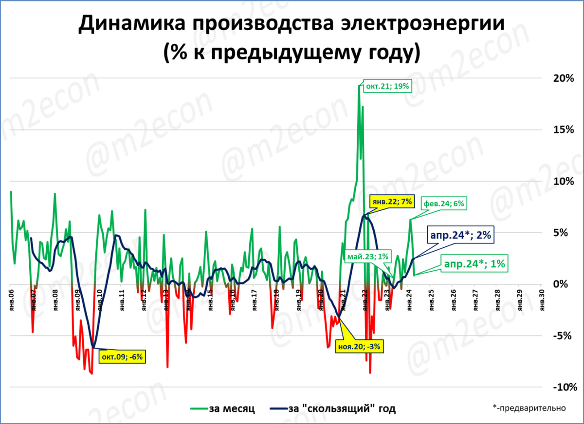 Прогноз: мы ожидаем, что рост производства электроэнергии (после этого замедления в апреле) продолжится более быстрыми темпами.