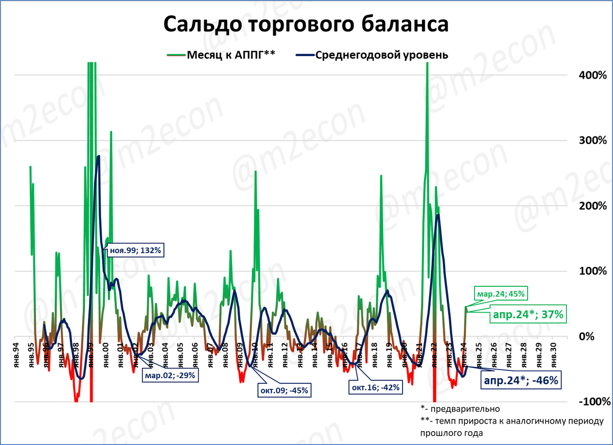 Отметим, что “довоенный” апрель 2021 года был превышен ещё в 2023 году.