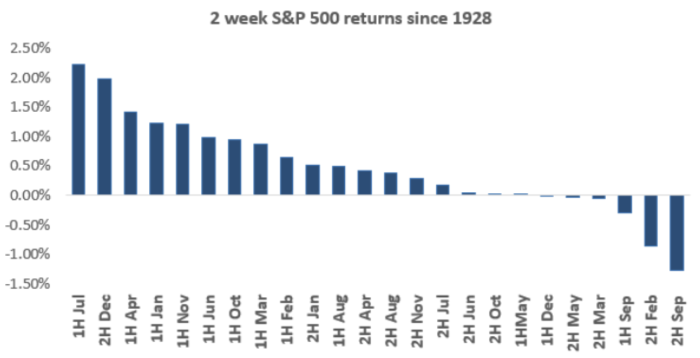 По словам Рубнера, с 1928 года первые 15 дней июля всегда были лучшим двухнедельным периодом торговли акциями в году. Как правило, он заканчивается 17 июля. Индекс S&P 500 заканчивал в плюсе девять июлей подряд со средней доходностью 3.7%. Индекс Nasdaq 100 имеет еще лучший показатель, показывая рост в течение 16 июлей подряд со средней доходностью 4.6%.