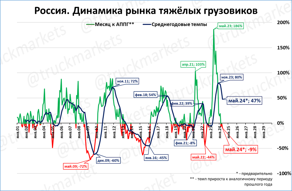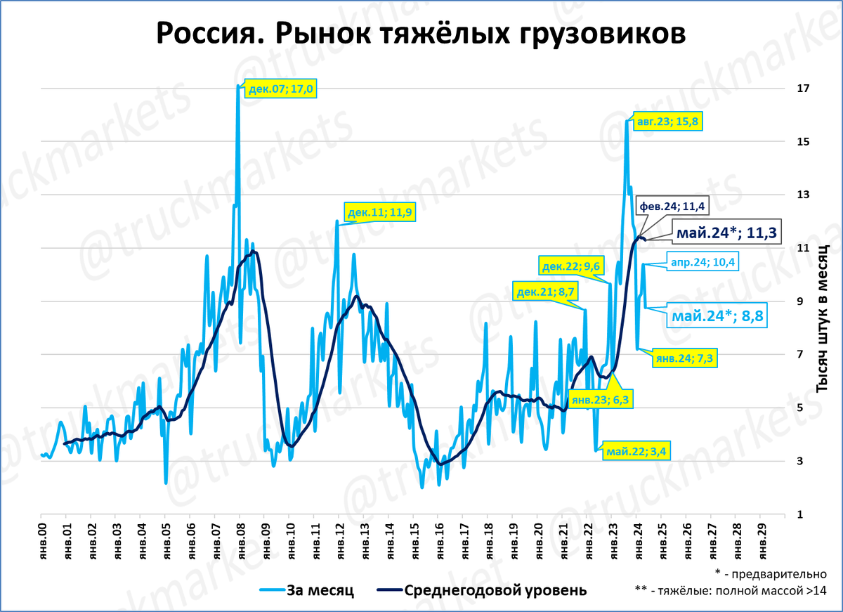 – рынок тяжёлых грузовиков падает, но не очень сильно. Годовой результат может быть вторым лучшим за всю историю.