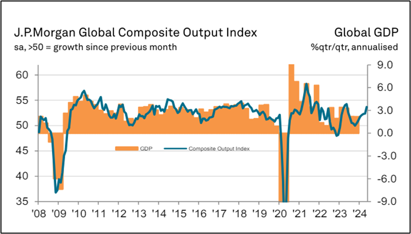 Рост деловой активности в целом по мировой экономике продолжается 16-й месяц подряд, с февраля 2023 года.