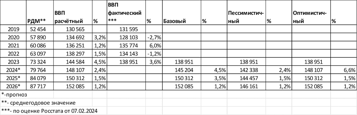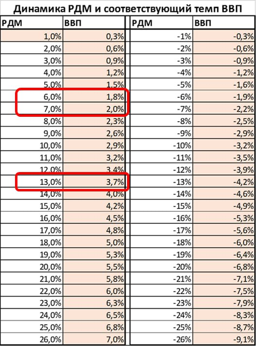 В 2023 году рост РДМ предполагал рост ВВП на 4,5%, фактически 3,6%. Неиспользованный потенциал роста около 0,9 процентного пункта.