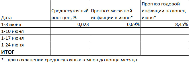 Итоги мая по инфляции пока неизвестны (будут 14 июня), но уже поступают данные за первые дни июня.