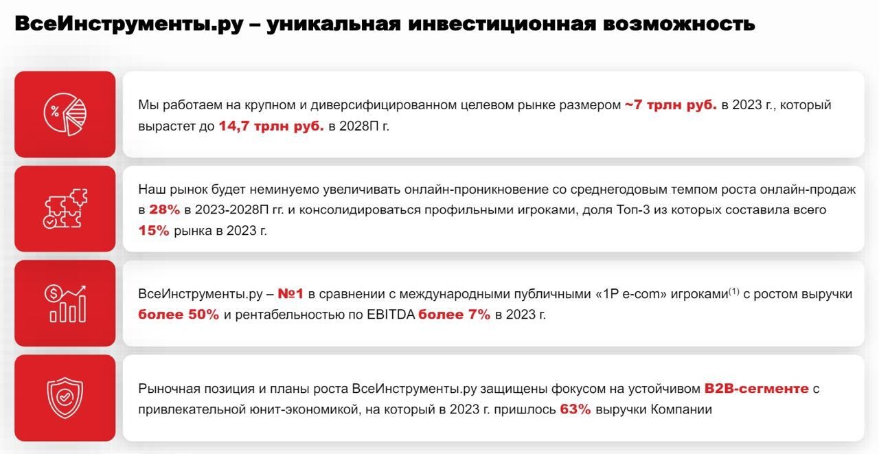 Публичный статус откроет новые возможности для ВсеИнструменты.ру как по привлечению фондирования, так и по мотивации сотрудников. Компания мне понравилась. Буду внимательно следить за новостями и жду данных по оценке бизнеса.