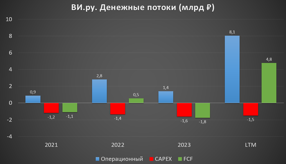 Свободный денежный поток 2021-2023 отрицательный. А FCF LTM аномально положительный только за счет роста кредиторской задолженности. Вероятно, это временный эффект, который до конца года нормализуется.