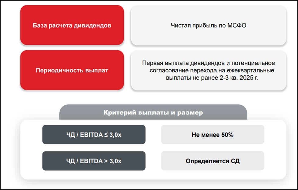Компания планирует выплачивать не менее 50% от ЧП по МСФО в случае, если ND/EBITDA <3.