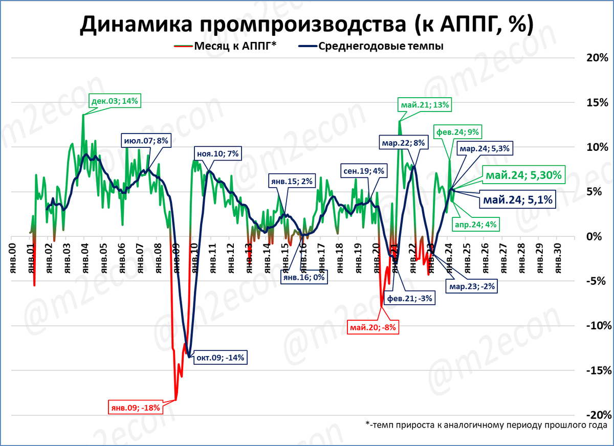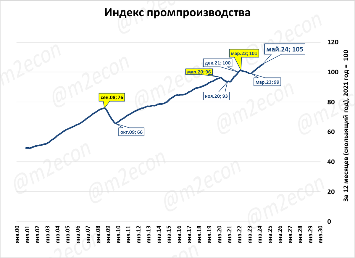 Промпроизводство за последние 12 месяцев (скользящий год) установило новый рекорд.