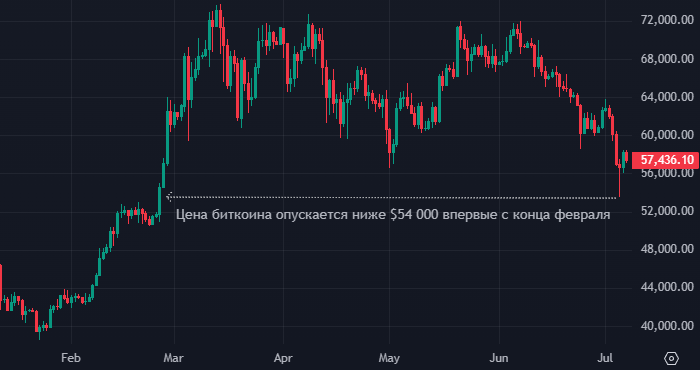 6 июля ориентированные на биткоин биржевые фонды (ETF) зафиксировали самый большой за месяц чистый приток капитала объемом $143,1 млн, следует из данных британской инвестиционной компании Farside. Это произошло на следующий день после того, как цена криптовалюты краткосрочно опустилась ниже $54 000 на новостях о том, что рухнувшая в 2014 году японская криптобиржа Mt. Gox перевела 47 229 биткоинов — стоимостью $2,71 млрд по текущим ценам — на новый кошелек, что стало первой крупной транзакцией с мая.