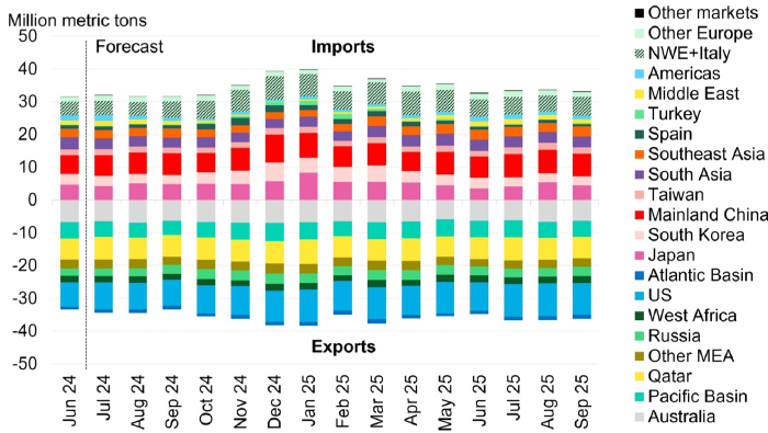 Спрос на СПГ со стороны Индии, где жара отступает, вероятно, также снизится. А вот Египет и Кувейт, скорее всего, увеличат закупки СПГ на фоне снижения собственной добычи природного газа.