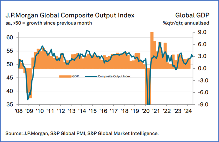 Рост деловой активности в целом по мировой экономике продолжается 17-й месяц подряд, с февраля 2023 года.