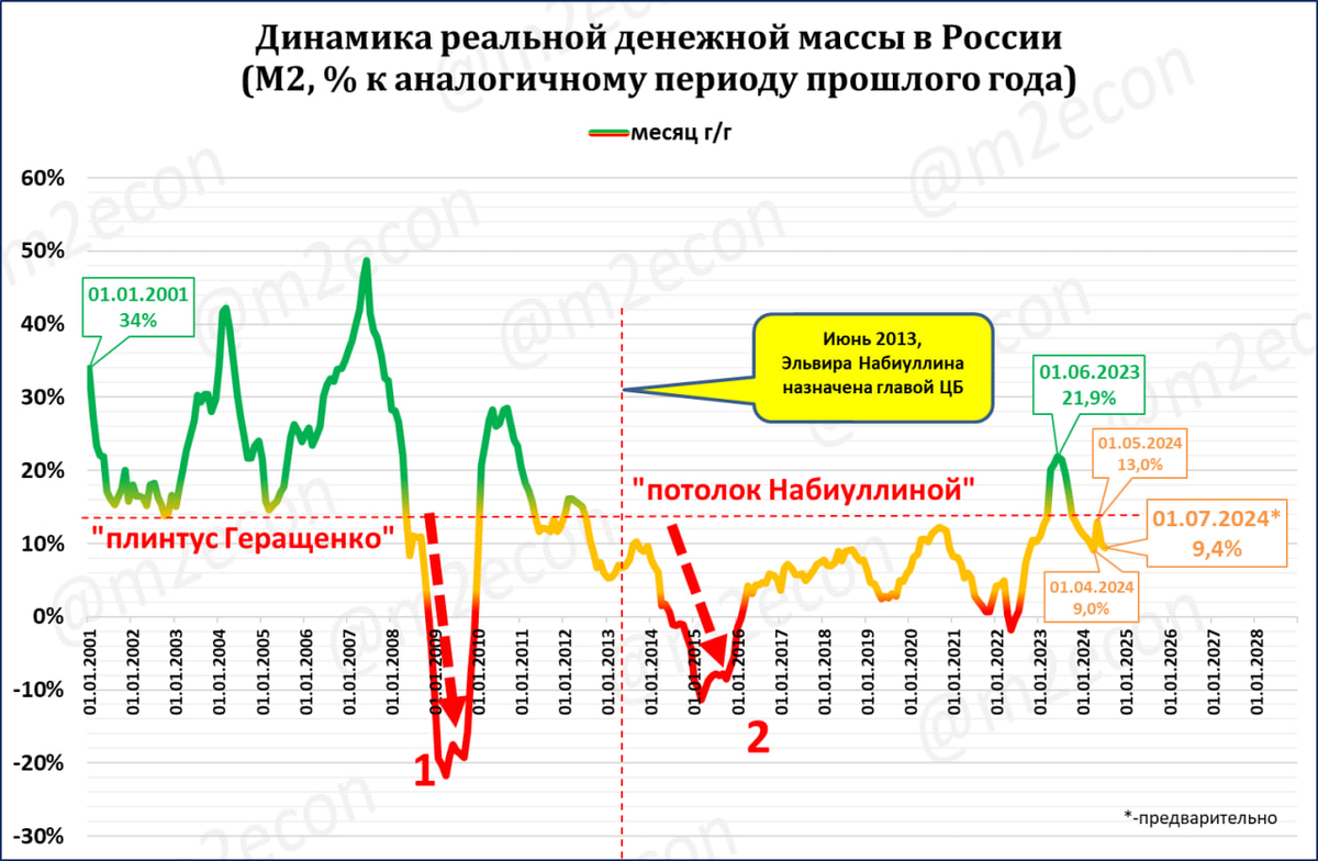 Набиуллина вернулась под свой потолок. Или, по-другому, она вновь опустила рост денежной массы "ниже плинтуса" 2000-2008 годов.