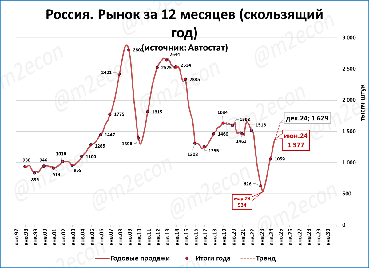 За последние 12 месяцев (скользящий год) рынок составил 1 337 тыс. автомобилей.