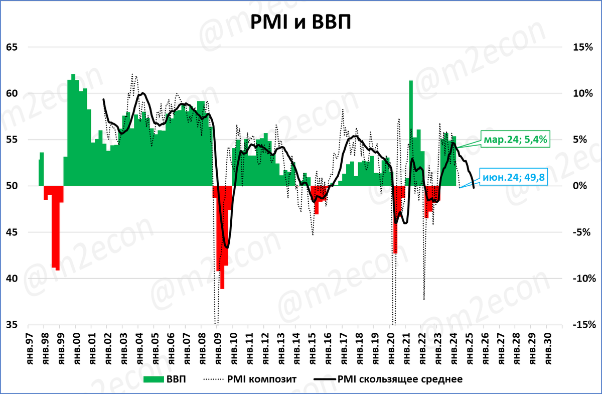 Например, в 2017-18 годах индекс PMI композит был выше, чем в 2010-12 или 2021 годах. Это видно на графике с предыдущей страницы.