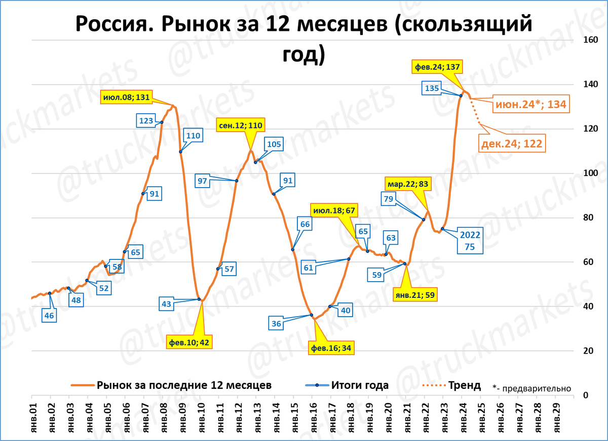 Механическое продление текущего тренда даёт результат 122 тысяч по итогам 2024 года.