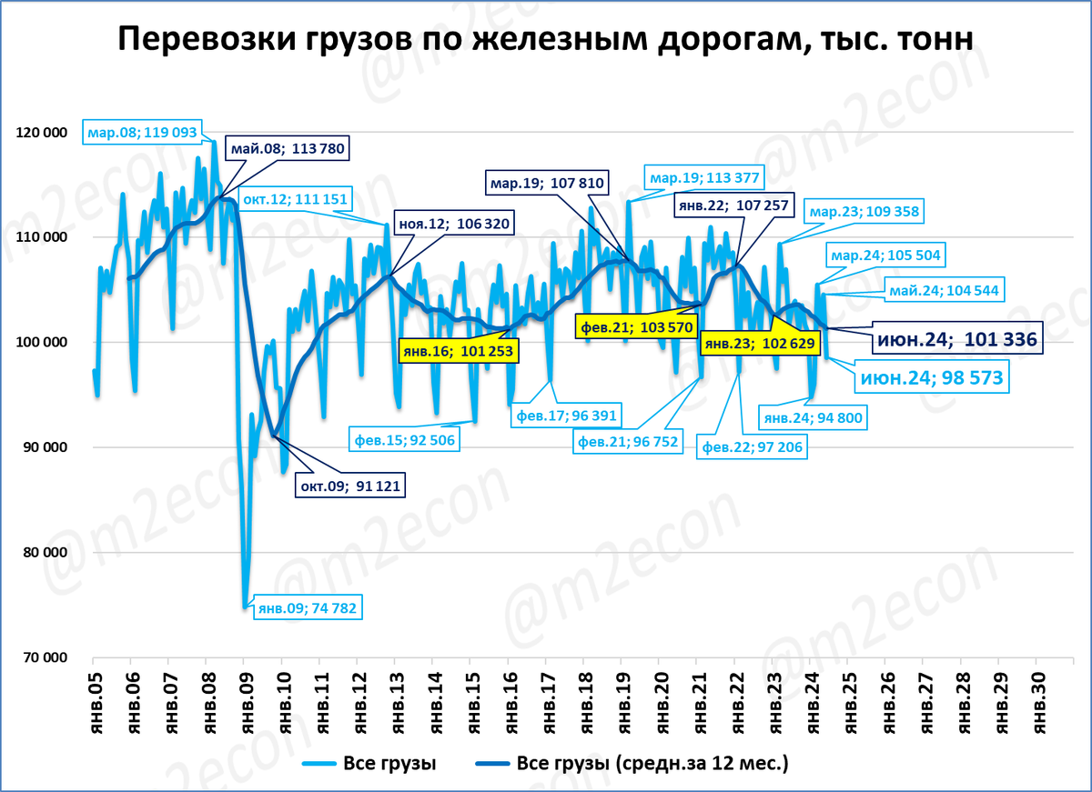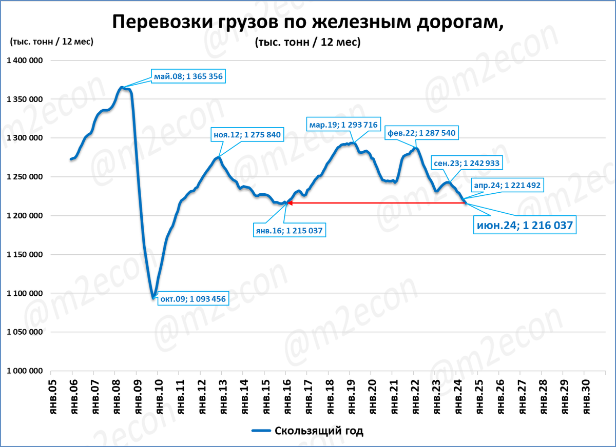 О возможных причинах снижения перевозок по железным дорогам см. "Экспресс-обзор за май 2024".