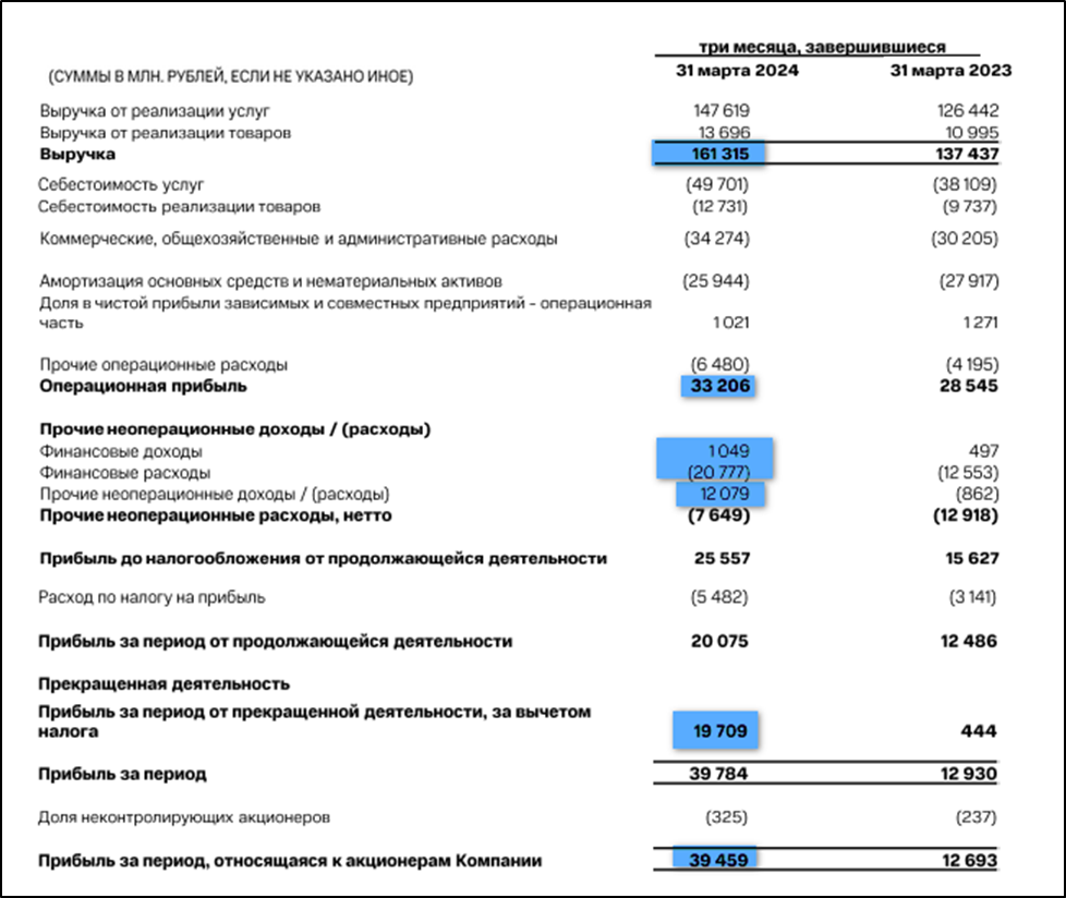 Прибыль от прекращенной деятельности (продажа «МТС-Армения») 19,7 млрд;