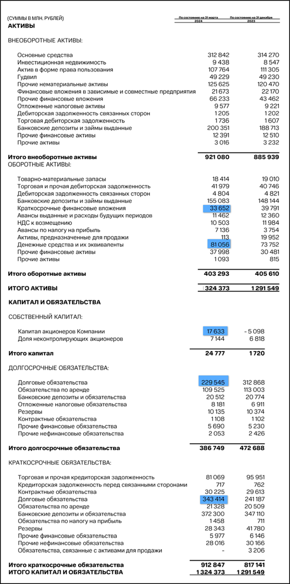 Основной рост выручки обеспечил «Финтех» +11 млрд, и 8 млрд прибавил «Телеком». ЧП взлетела в 3 раза, но половина прибыли приходится на разовые факторы (продажа «МТС-Армения») и Прочие доходы (бумажные переоценки ценных бумаг и валют). Т.е. ЧП скорр = 7,8 млрд.