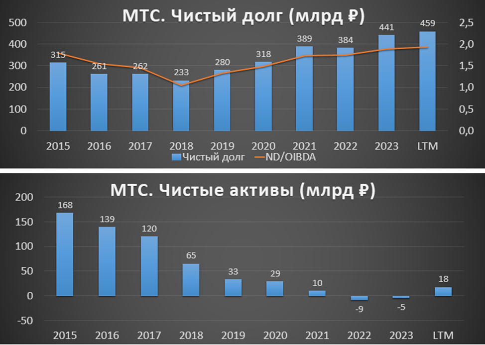 Рост долга. МТС платит высокие дивиденды за счет роста долговой нагрузки. Бесконечно эта ситуация продолжаться не может. Для уменьшения долга МТС рассматривает продажу своего башенного бизнеса.
