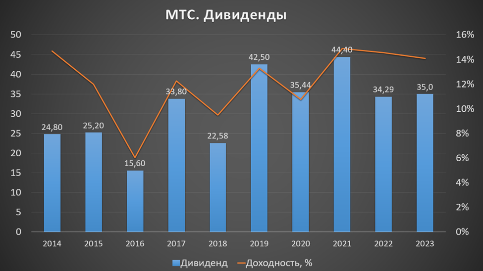 К слову, дивидендная доходность МТС около 16% уже не кажется очень высокой на фоне текущих ставок по вкладам.