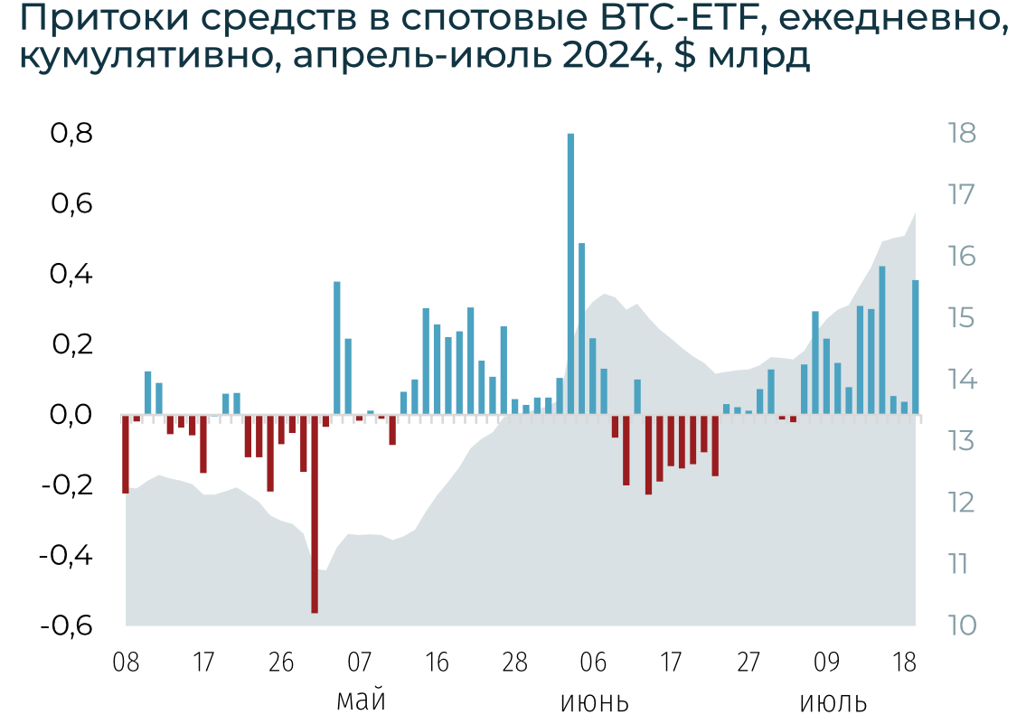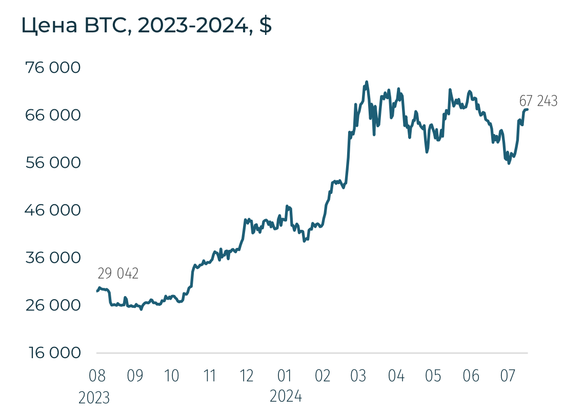 Правительство Германии продали все BTC, а распределение активов кредиторам Mt.Gox незначительно повлияло на рынок. Неудачное покушение на «крипто-президента» Дональда Трампа совместно со снятием Джо Байдена с президентской гонки поддержало котировки.