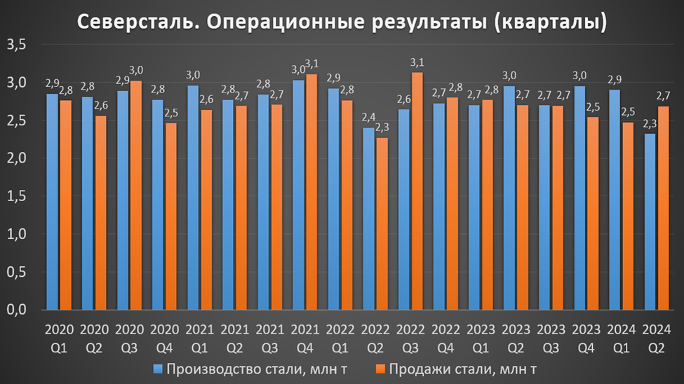 За полгода производство чугуна снизилось на 15% год к году на фоне проведения ремонта доменной печи №5, а производство стали снизилось на 8% до 5,2 млн тонн. А квартал к кварталу снижение производства составило более 20%.