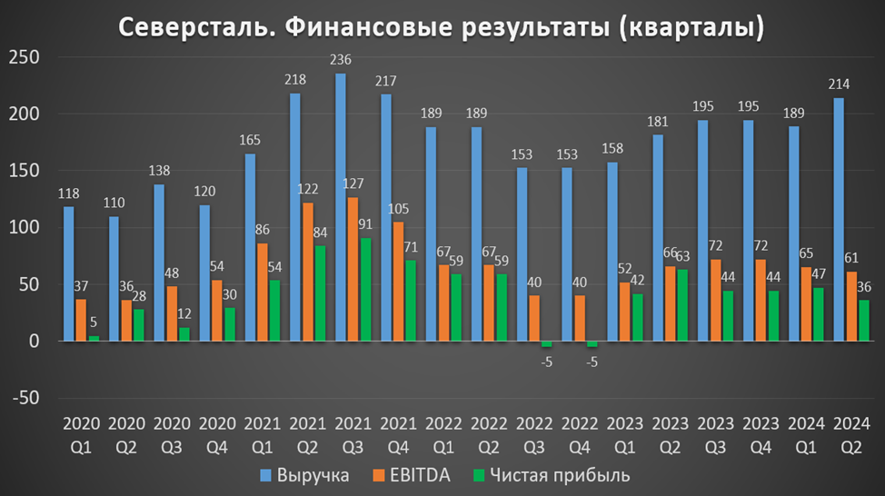 В июне Северсталь представила новую стратегию развития до 2028 года. Финансовая цель – рост EBITDA на 150 млрд рублей, т.е. более чем в 1,5 раза относительно 2023 года. Ежегодный рост примерно на 10% в течение 5 лет. Ожидается, что доля на внутреннем рынке вырастет с 15% до 20%.