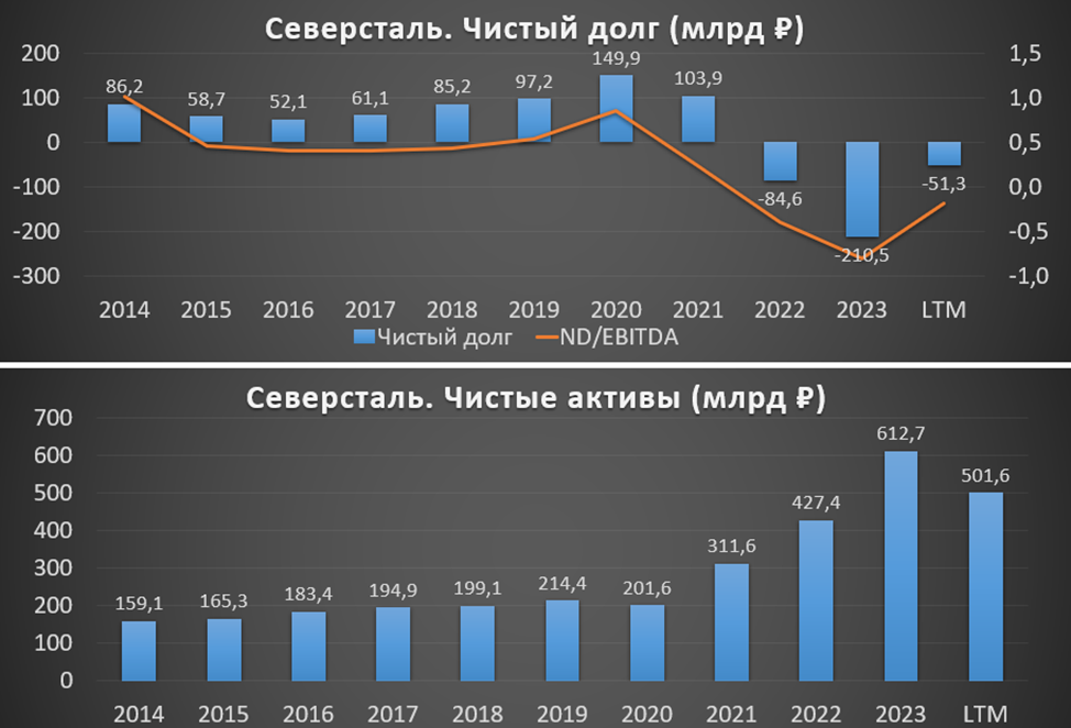 Чистый долг отрицательный, что говорит об отличной финансовой устойчивости.