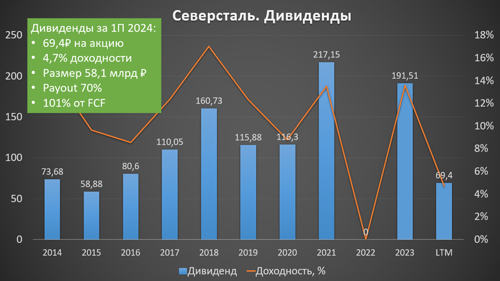 Таким образом, доходность за первое полугодие 4,7% к текущей цене акции. Что на фоне текущих ставок по вкладам выглядит скромно. На дивиденды уйдёт 70% от чистой прибыли и 101% от свободного денежного потока.