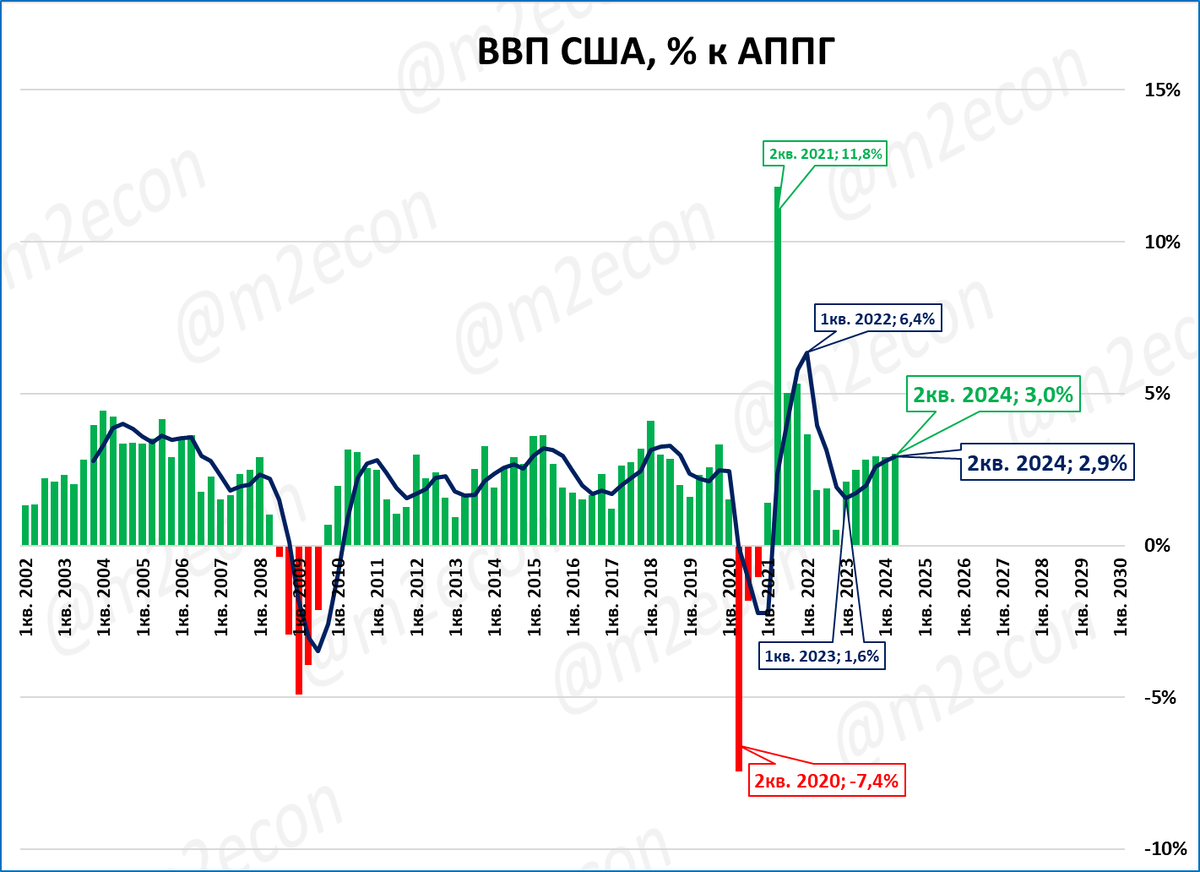 Рост ВВП США во 2 квартале 2024 года составил 3,0%.