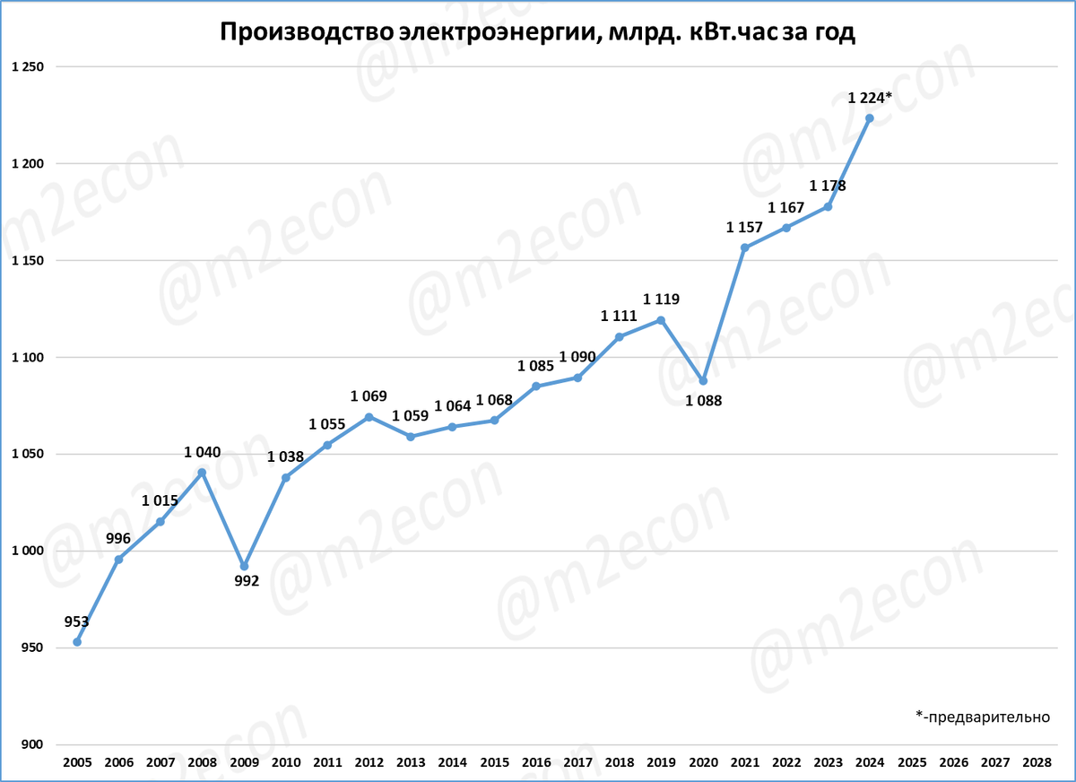 Резюме: динамика производства электроэнергии подтверждает хорошую динамику экономического роста в 2024 году.