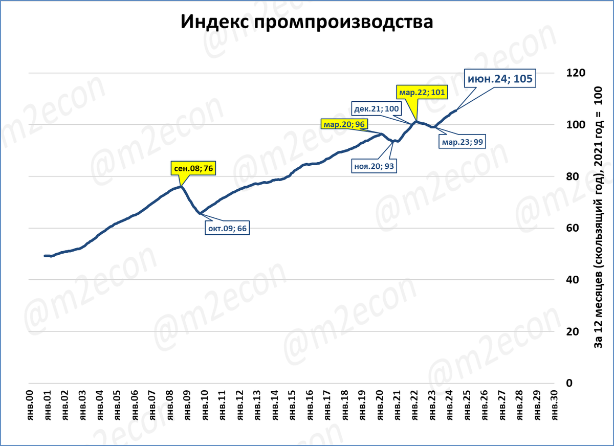 Промпроизводство за последние 12 месяцев (скользящий год) установило новый рекорд.