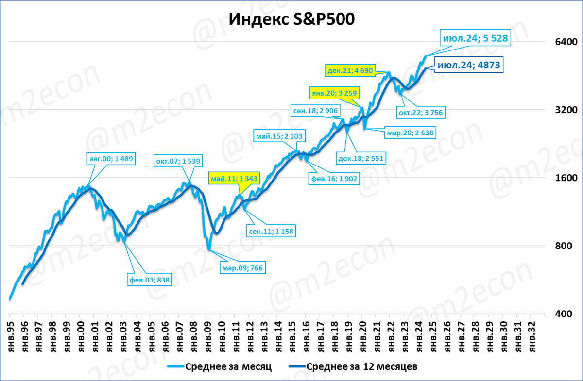 Американский индекс S&P 500 в июле составил 5 528 пунктов (+22%). Это очередной исторический рекорд.
