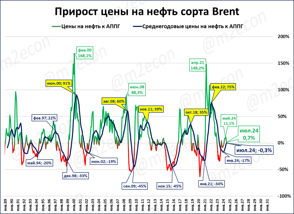 Средняя цена нефти Брент в июле составила 82 долларов за баррель. С сентября 2022 года (более полутора лет) цены колеблются в диапазоне 75-93 доллара.