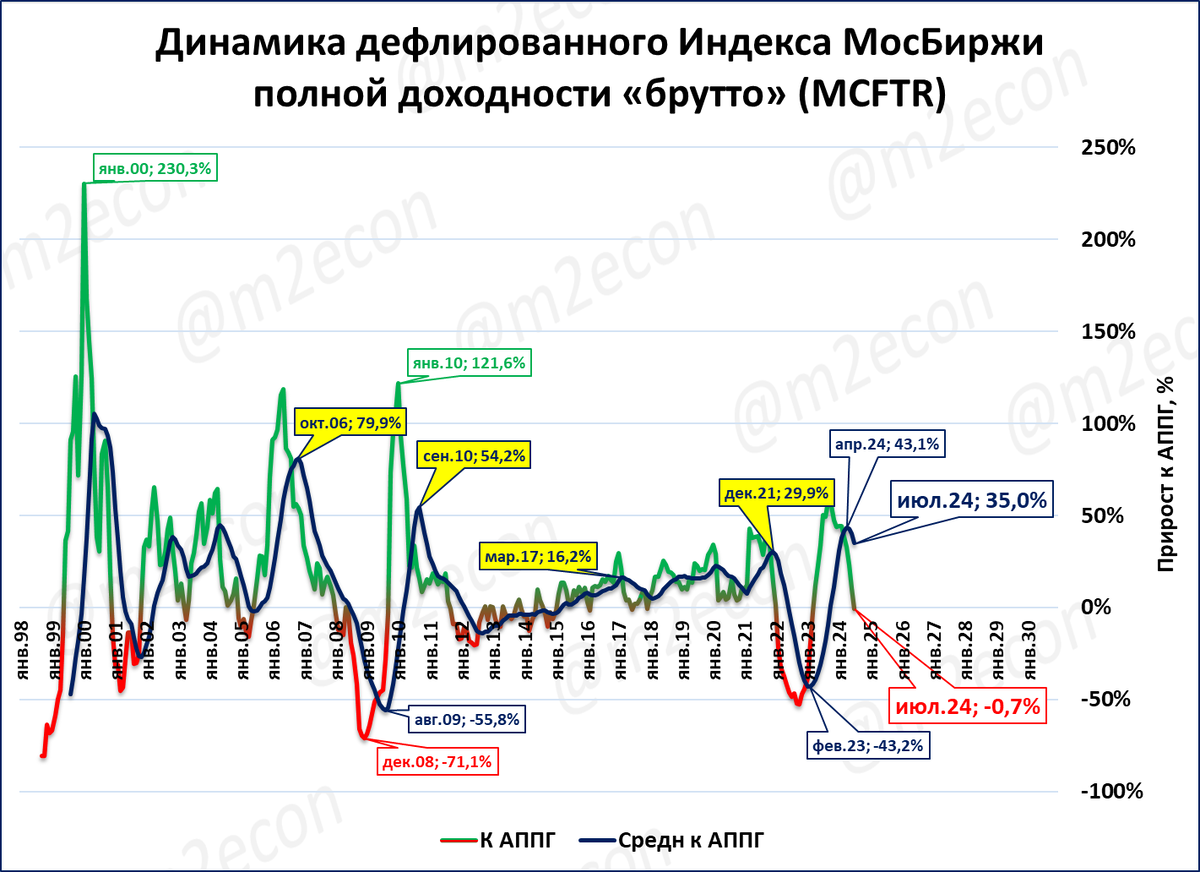 Реальный индекс полной доходности начал падать в годовом выражении. Это первый месяц падения.