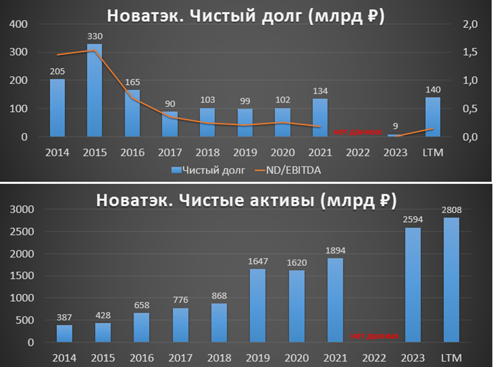 Таким образом, чистый долг 140 млрд. Существенный рост долговой нагрузки за полгода. Правда, ND/EBITDA = 0,1. Это говорит об отличной финансовой устойчивости.