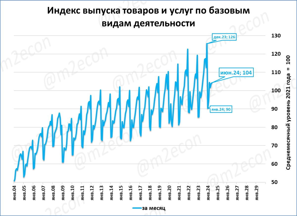 Выпуск базовых отраслей (это около 60% ВВП) в июне составил 104% к среднемесячному уровню 2021 года.