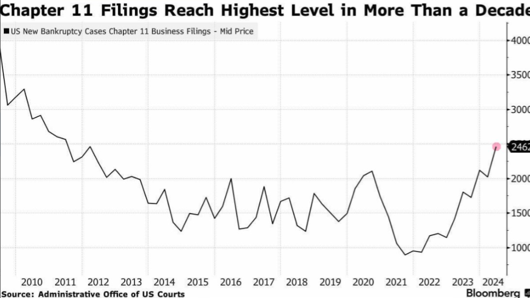 Кол-во заявлений на корпоративные банкротства выросло в США до максимума за 13 лет.