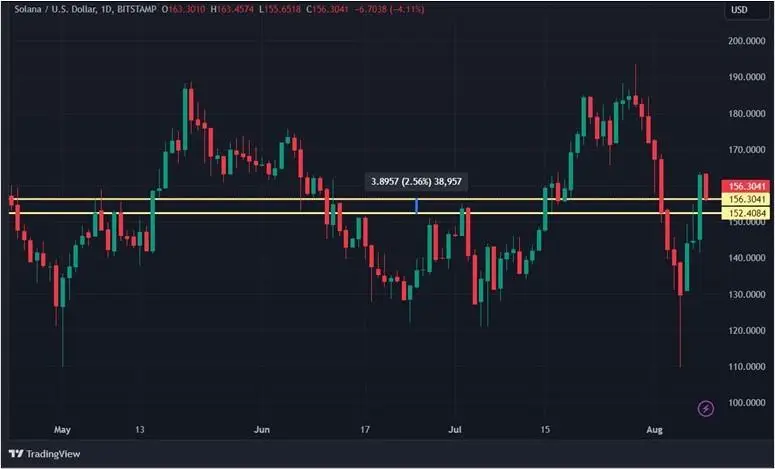 Криптовалюта Solana за семь дней с 2 по 9 августа выросла на 2,56 %. При этом по ходу недели, в понедельник, 5 августа, монета теряла более 27 %. Таким образом SOL показала свой минимум с 5 марта, однако потом цена поднялась.