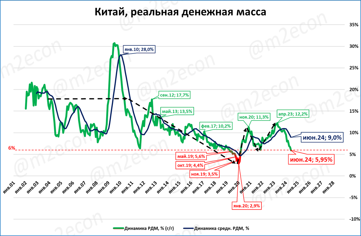 Или жёстче: Банк Китая, допуская замедление реальной денежной массы, может вновь “добиться” падения ВВП, как и в 2020 году, но уже без всякой пандемии.