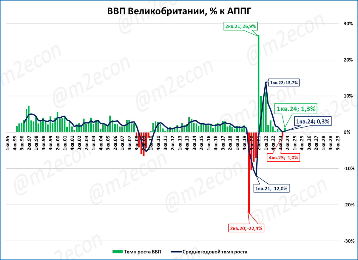 Рост ВВП Британии в 1 квартале составил 1,3%.