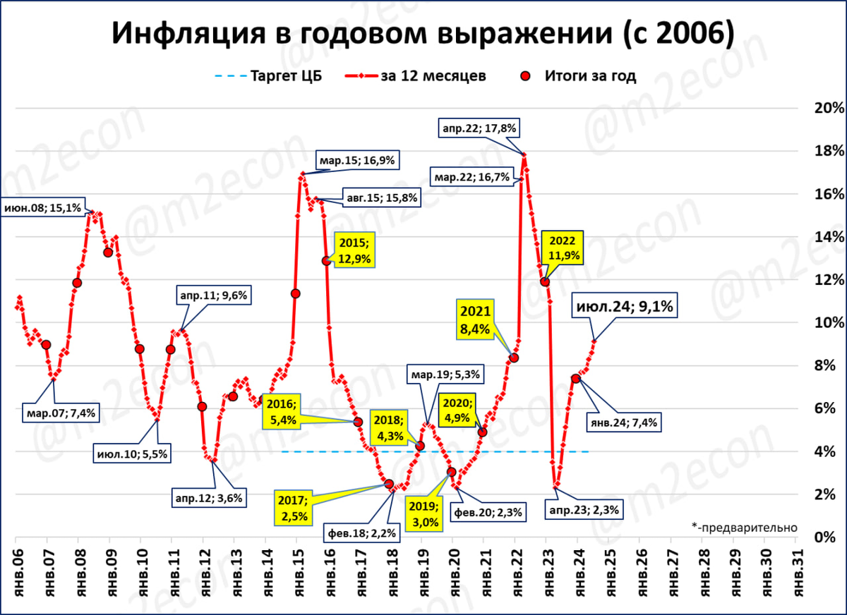 Инфляция по итогам июля (9,1%) совпала с нашей предварительной оценкой.