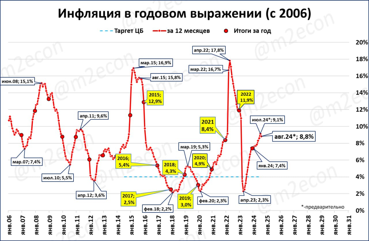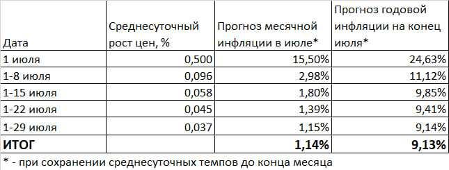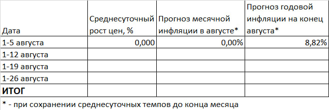 Если так будет до конца месяца, то по итогам августа инфляция снизится до 8,8% годовых.