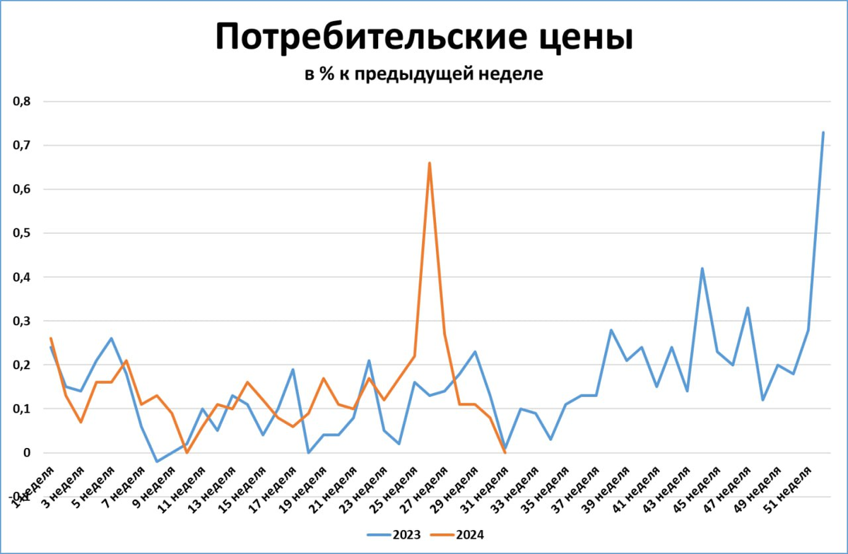 Недельная инфляция уже четыре недели подряд держится ниже прошлогоднего уровня.