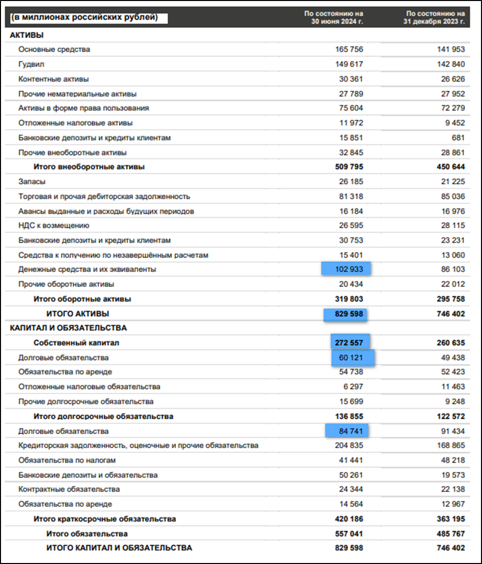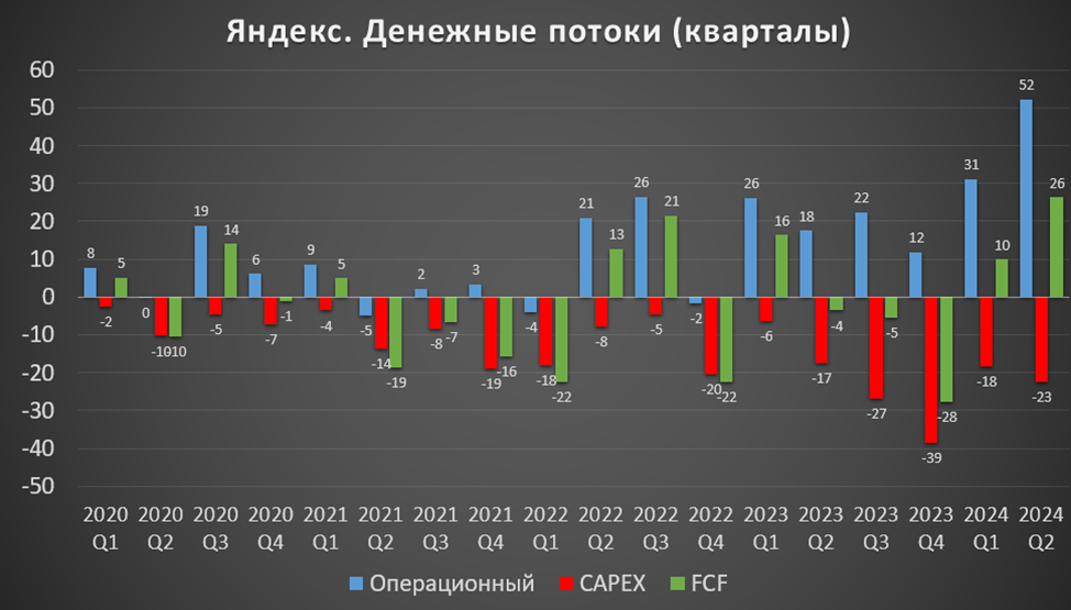 На квартальной диаграмме видно, что операционный и свободный денежные потоки в 2Q2024 рекордные.