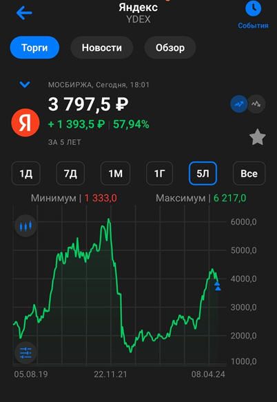 24.07.2024 акции МКПАО «Яндекс» начали торговаться на Московской бирже под тикером YDEX.